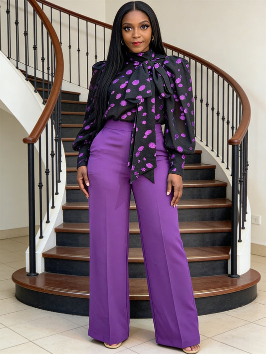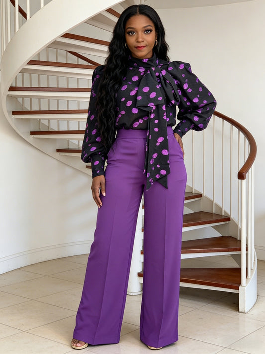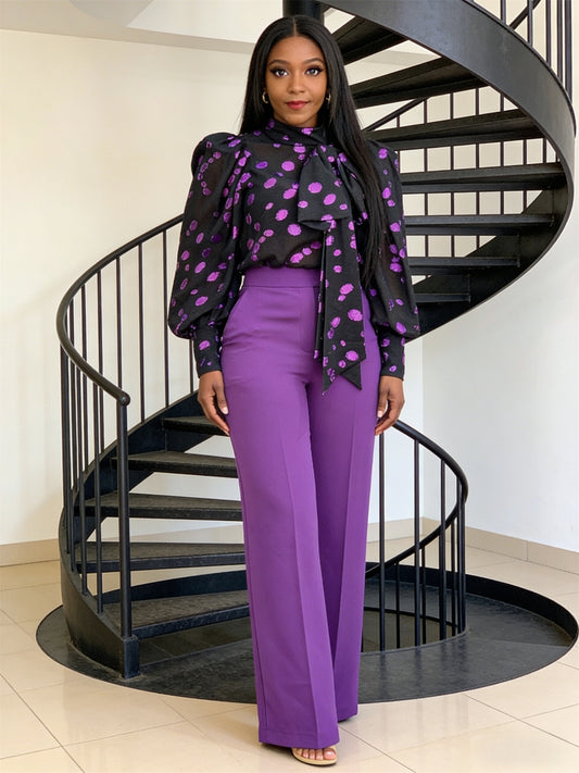 Women's elegant two-piece set of wide-leg pants with polka dots