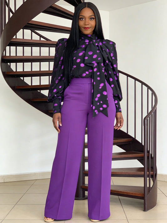 • Women's elegant two-piece set of wide-leg pants with polka dots