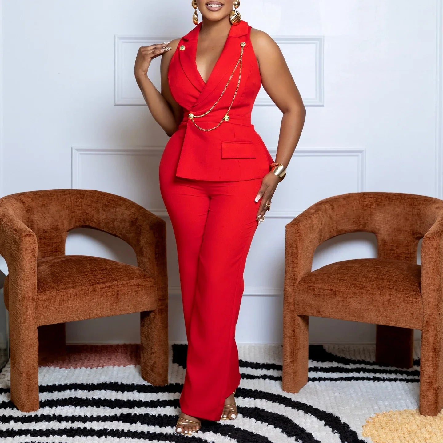 This stylish women's jumpsuit combines a trendy chain collar with a wide-leg silhouette, offering a sophisticated blend of African-inspired design and modern casual elegance. Crafted to provide both comfort and style, it serves as a versatile long dress option ideal for various occasions. Its flattering cut enhances the figure while allowing ease of movement, making it perfect for ladies who want to make a chic statement without sacrificing comfort. Whether for daytime outings or evening events, this jumpsuit delivers a refined yet relaxed look.