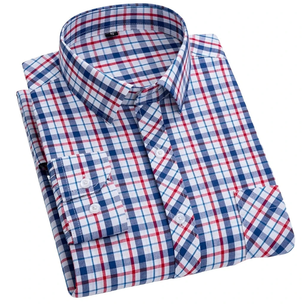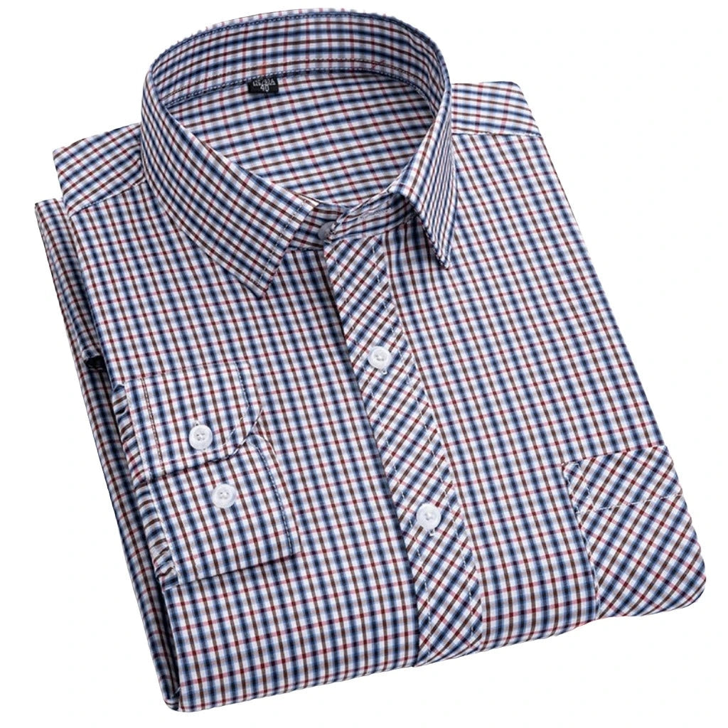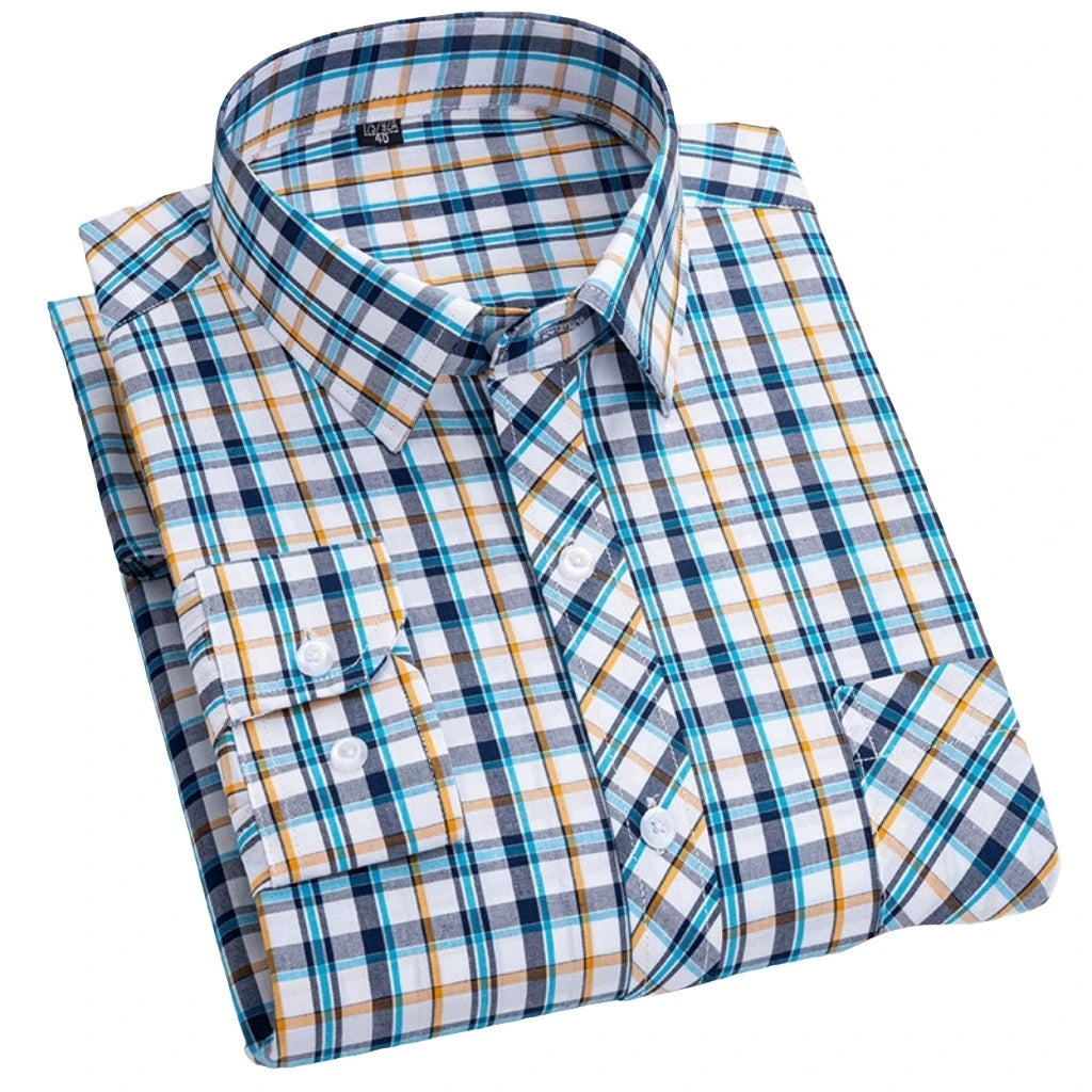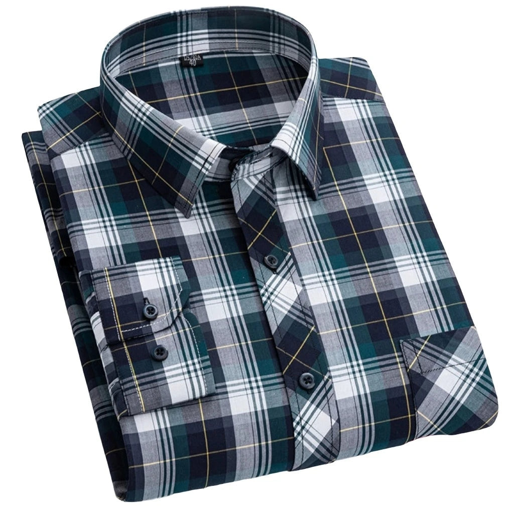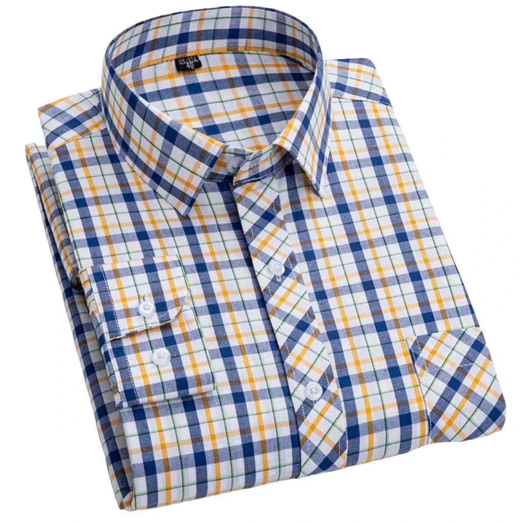 Men Button-Down Collar Long Sleeves Casual Cotton Gingham Dress Shirt