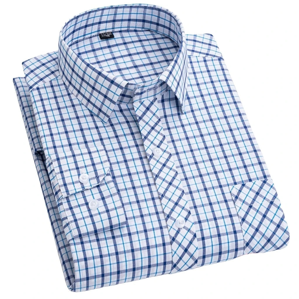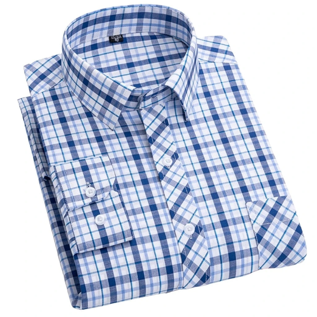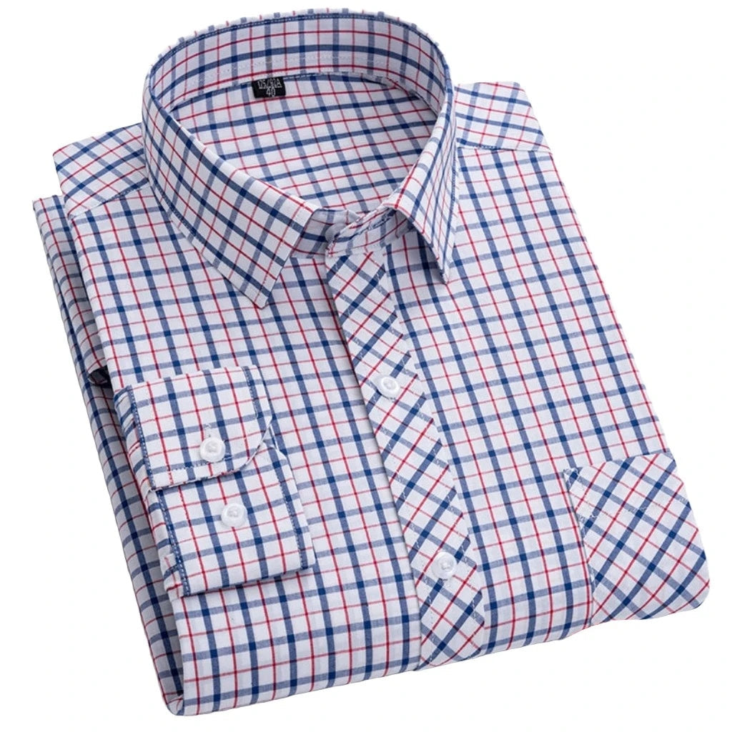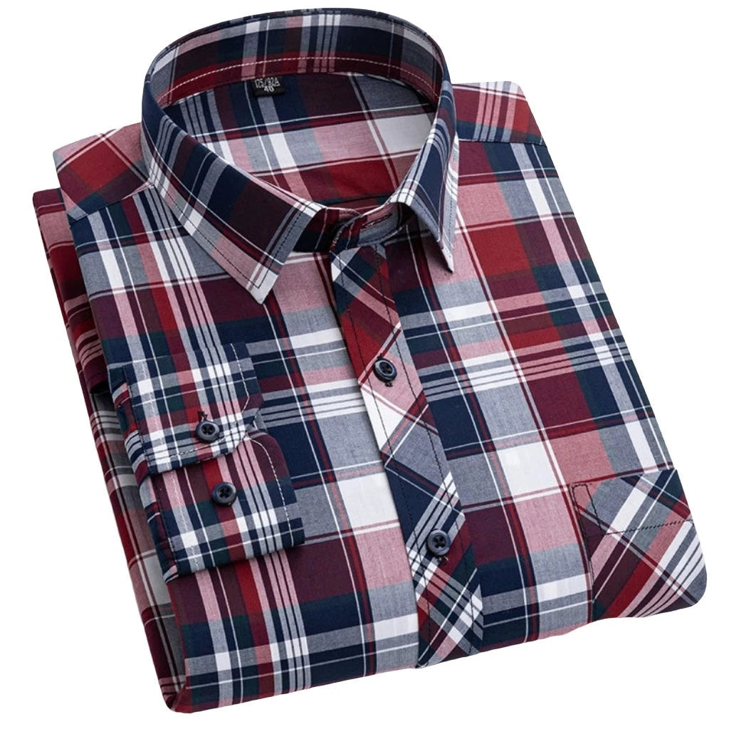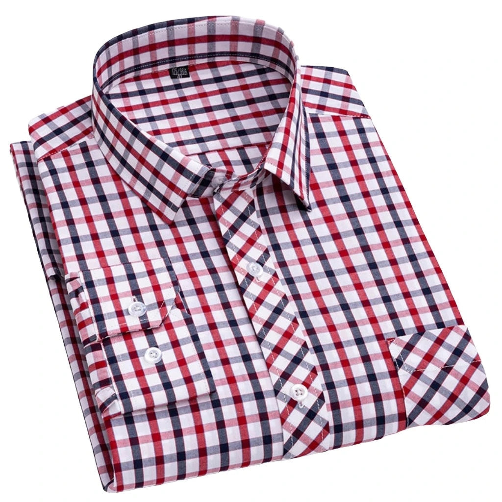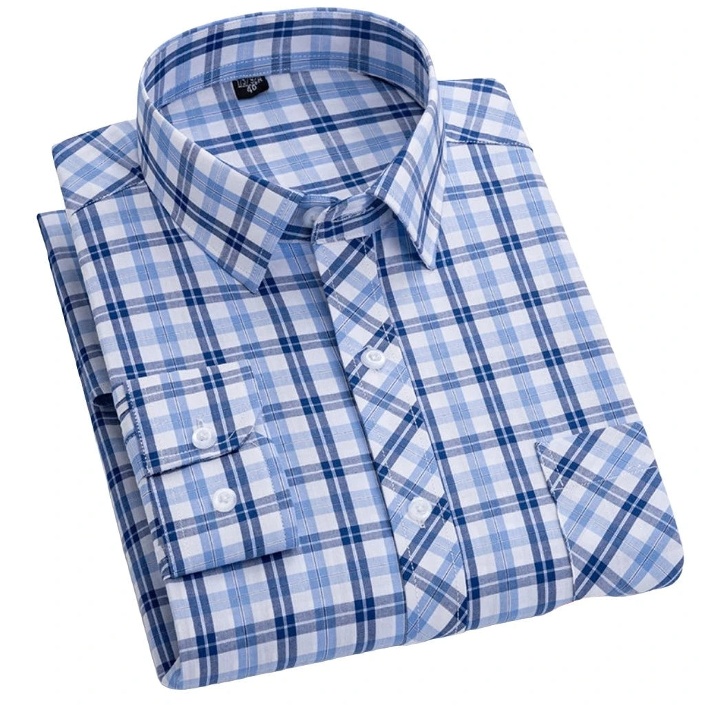 Men Button-Down Collar Long Sleeves Casual Cotton Gingham Dress Shirt