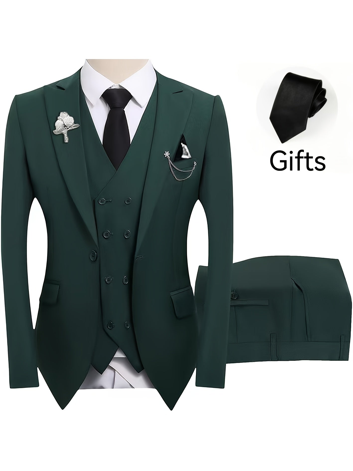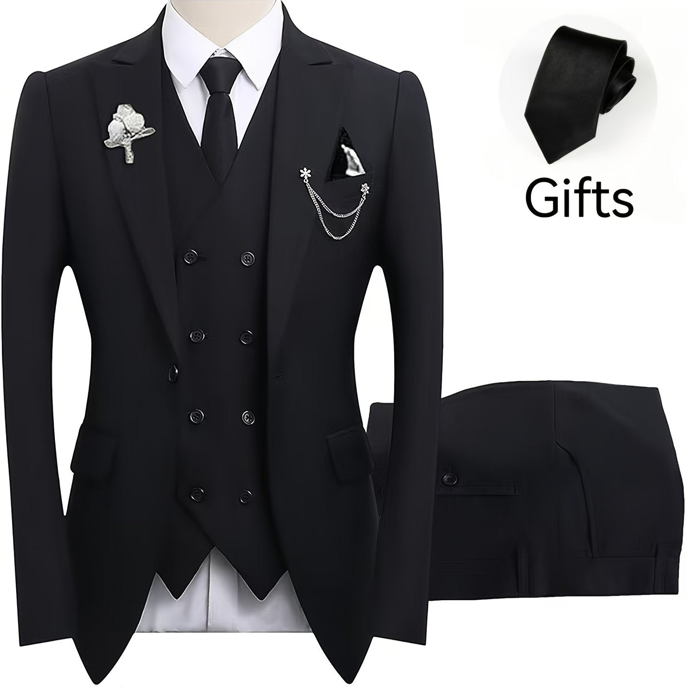 New Men's Three-Piece Suit Set (Suit Jacket + Vest + Pants, with a Tie) Slim Fit Tailcoat Ideal for Holiday Gatherings, Business Attendance, Weddings, and Parties